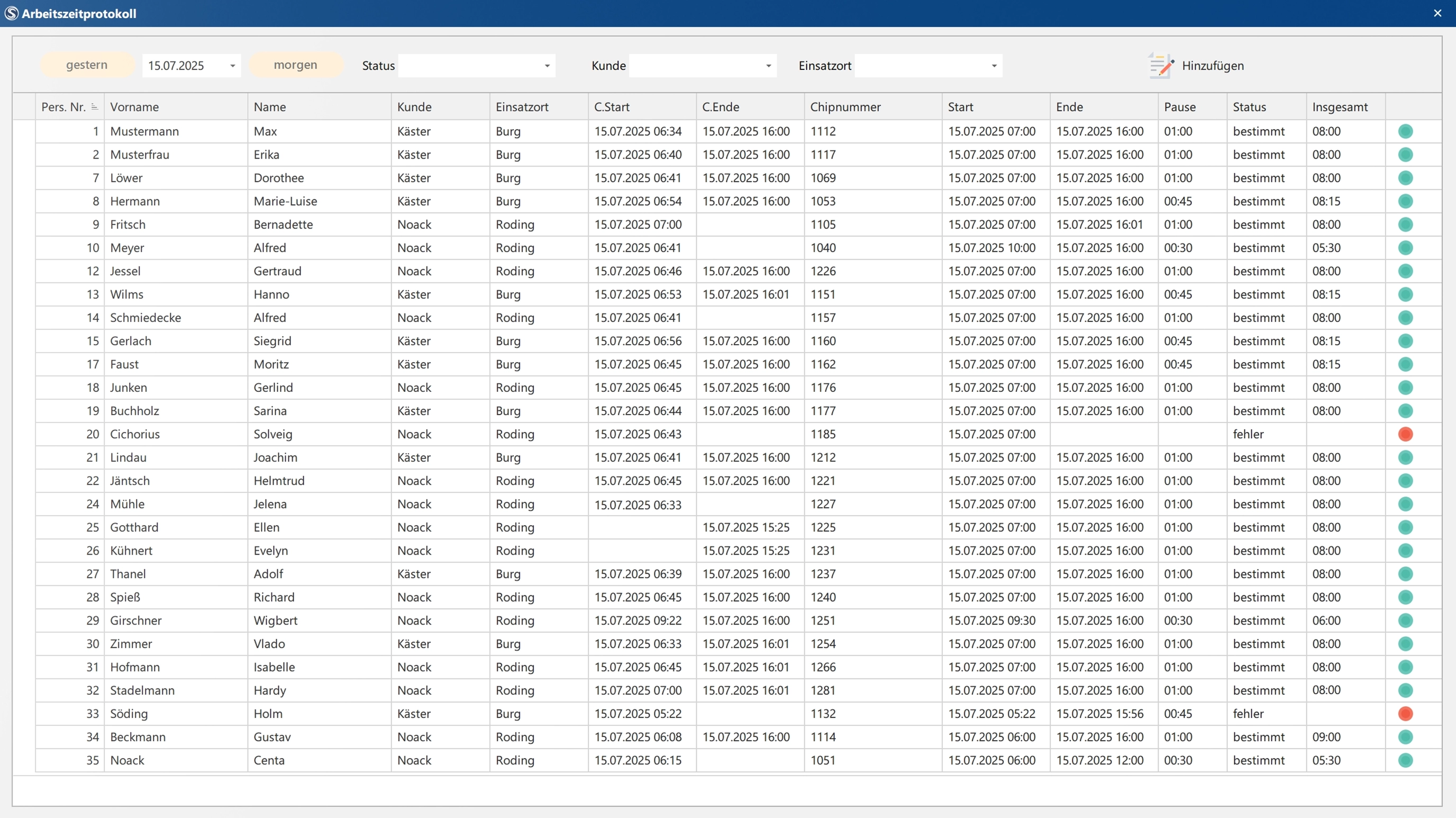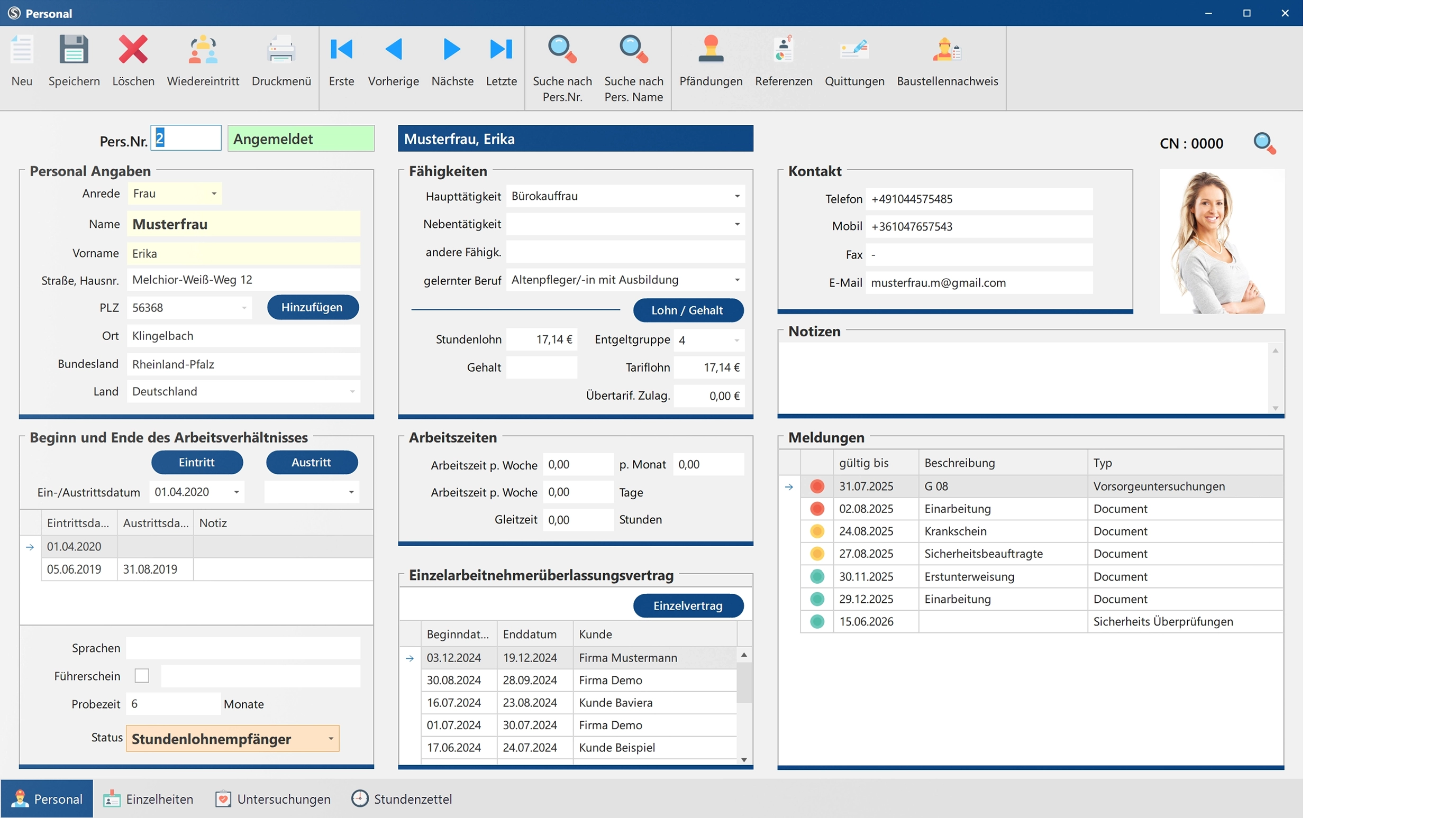 Alles im Blick, alles im Griff: Unsere Lösung bündelt alle relevanten Informationen auf nur zwei Seiten – inklusive direktem Zugang zur digitalen Akte. Verträge, Verfügbarkeiten und Dokumente lassen sich effizient verwalten und bei Bedarf reaktivieren. Passende Mitarbeitende werden automatisch neuen Aufträgen zugeordnet – für reibungslose Abläufe.